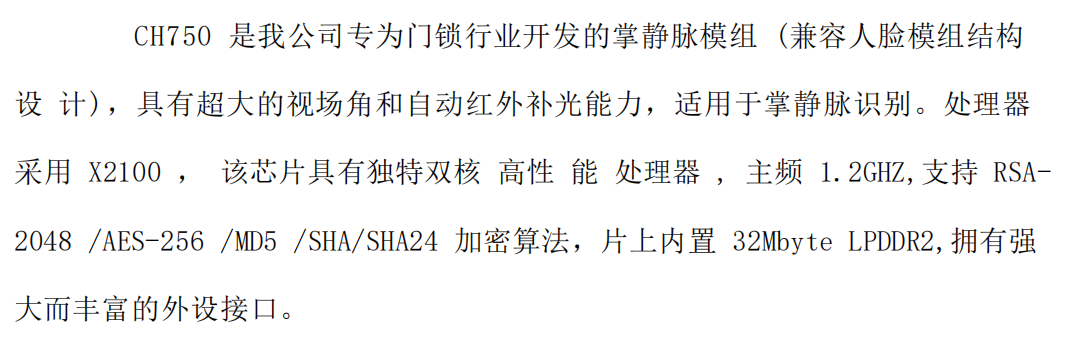 超大的視場角和自動紅外補光能力的掌靜脈模組